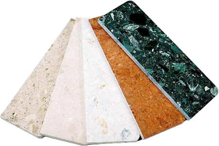 Konglomerat marmurowy składa się w 95% z grysu marmurowego oraz w 5% żywicy poliestrowej spełniającej rolę łącznika. W niektórych zastosowane są również pigmenty. W procesie produkcji wybiera się wyselekcjonowane odłamki marmuru, łączy z ekologicznymi żywicami poliestrowymi. Kiedy masa marmurowa zastygnie cięta jest do odpowiednich wymiarów. Następnie blaty z są polerowane, dzięki czemu uzyskują połysk naturalnego kamienia. Posiada szereg zalet: wytrzymałość, odporność na ścieranie i zarysowania, mała absorpcja wilgoci i plamoodporność, duży wybór wzorów, faktur, kolorów, grubości.